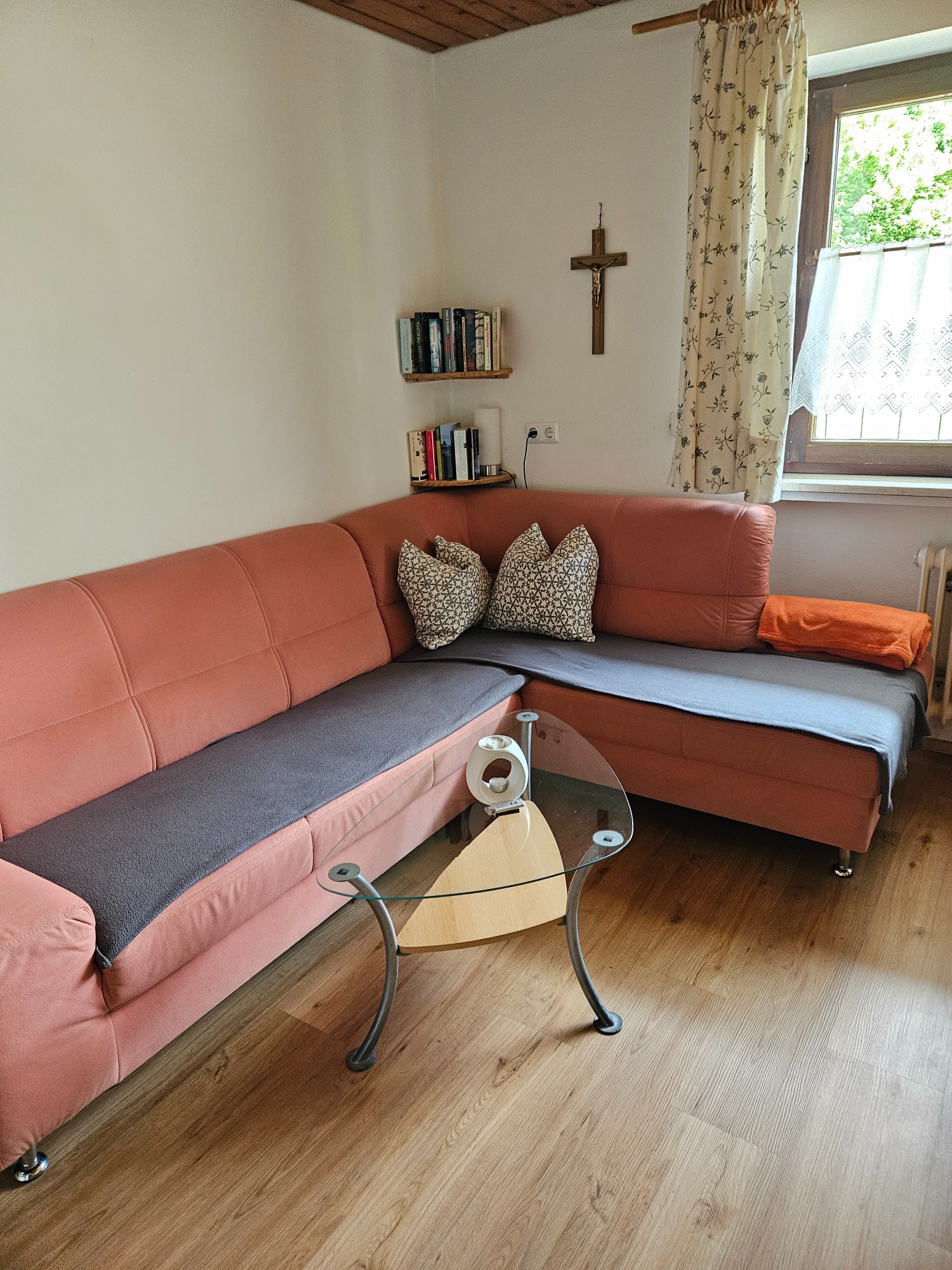 2 Doppelzimmer, Kleine Wohnküche mit Küchenzeile, Badezimmer und separates WC, verschiedene Sitzgruppen im Garten und vor der Haustüre überdacht. Kostenlose Parkmöglichkeit vor Ort selbstverständlich vorhanden. 450m zum Lechsee (5min. zu Fuß)